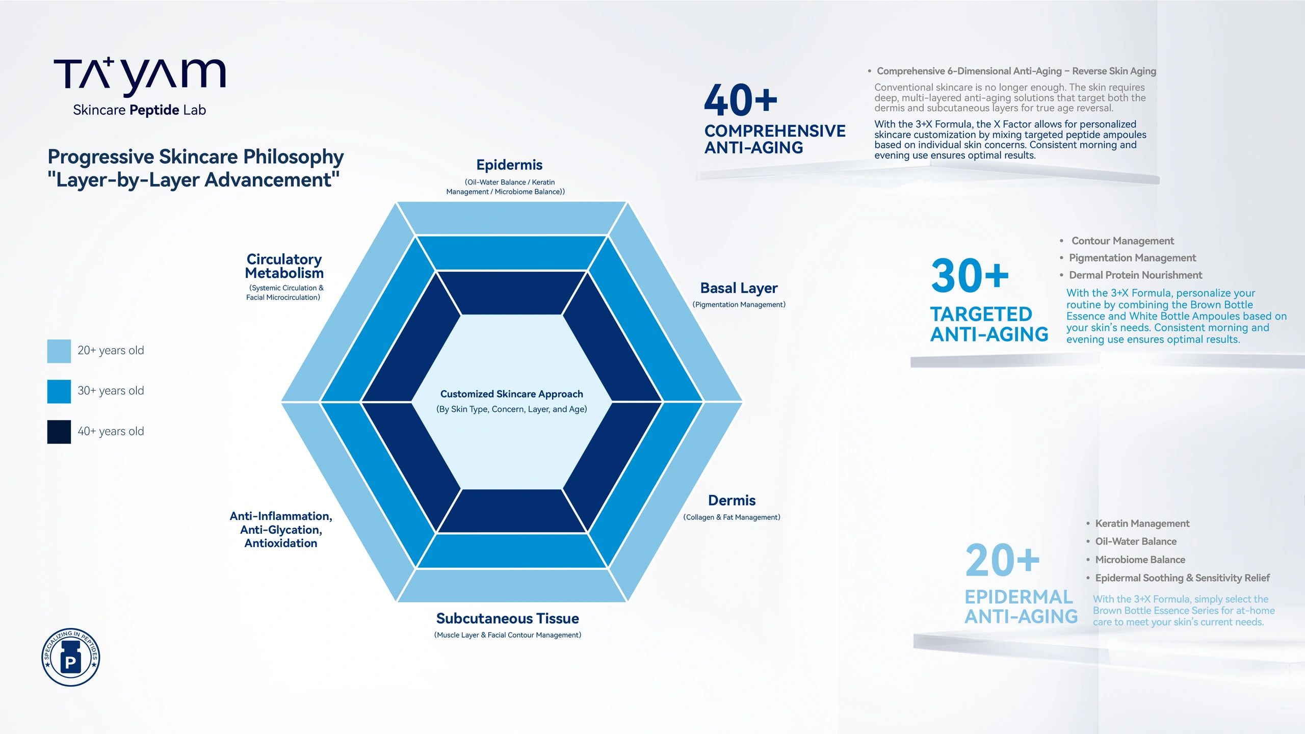 Based on dermatological and anatomical science, TA+YAM follows a customized skincare approach by skin type, concern, layer, and age, ensuring a personalized formula for every individual.